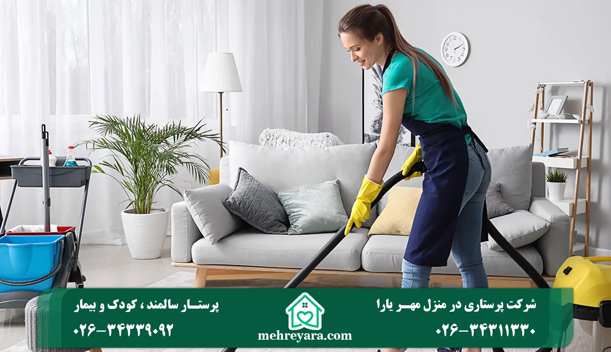 شرکت خدماتی پرستاری مهریارا با کادر مجرب و متخصص خود ارائه دهنده خدمان نظافت منزل در کرج و مناطق اطراف کرج از طریق تماس با شماره های درج شده در وبسایت میتوانید از پلن های ویژه ما برخوردار شده و با بهترین کیفیت کار و مناسب ترین قیمت نیرو های خود را به صورت ساعتی، روزانه، مقطعی و… به خانه اعزام کنید.