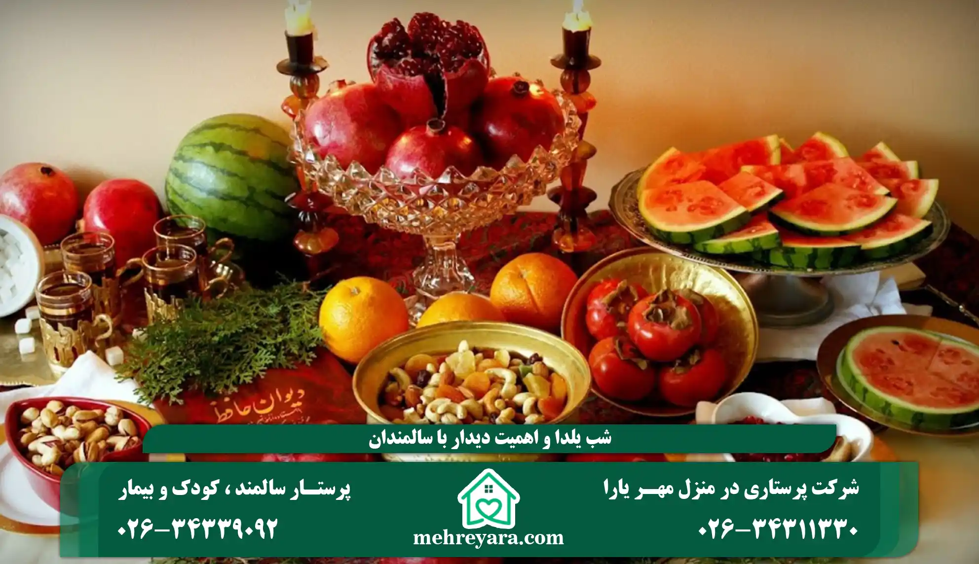 شب یلدا فرصتی ارزشمند برای تقویت روابط خانوادگی و توجه به بزرگان است. دیدار با سالمندان در این شب میتواند حس تنهایی آنها را کاهش دهد، اعتمادبهنفسشان را افزایش دهد و سلامت روانشان را تقویت کند. در مواردی که سالمندان نیاز به مراقبت بیشتری دارند، استفاده از خدمات پرستاری در منزل، پرستار سالمند در منزل یا اقدام برای استخدام پرستار سالمند، تجربهای امن و خاطرهانگیز برای خانواده و سالمندان فراهم میکند. با کمک بهترین مرکز خدمات پرستاری مهریارا میتوان شب یلدا را به لحظهای خاطرهساز، آرام و شاد برای سالمندان تبدیل کرد.برای دریافت مشاوره با شماره تلفن های 02634339092 و 02634311330 با کارشناسان ما در تماس باشید