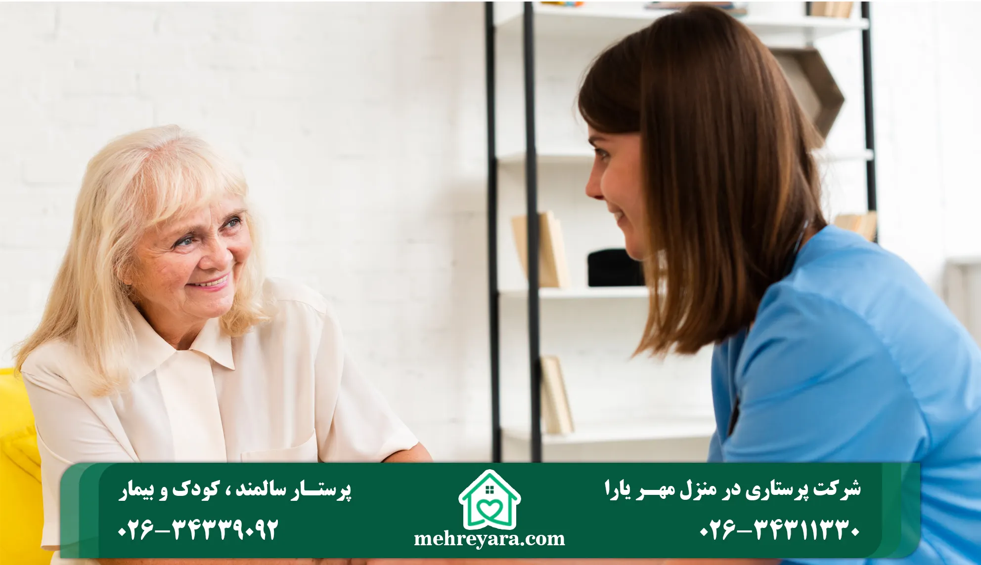 حمایت روحی و روانی: پرستار سالمند میتواند با صحبت و ایجاد یک محیط حمایتی، از فشارهای روحی سالمند بکاهد و به او احساس راحتی و امنیت بدهد.