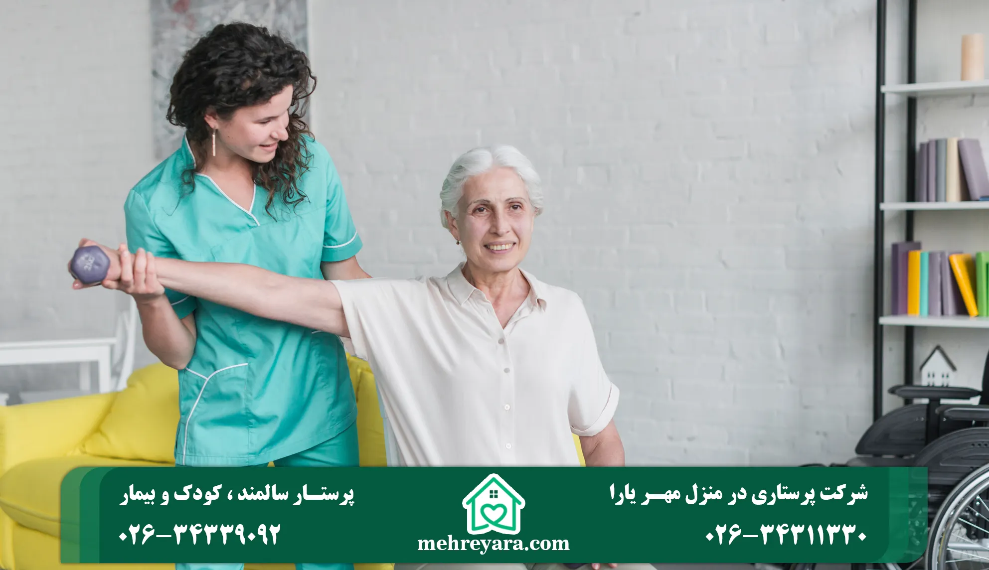 پشتیبانی از توانبخشی و تمرینات حرکتی: پرستار با نظارت بر انجام تمرینات فیزیوتراپی ساده، میتواند به سالمند کمک کند تا انعطافپذیری و قدرت عضلانی خود را حفظ کند.